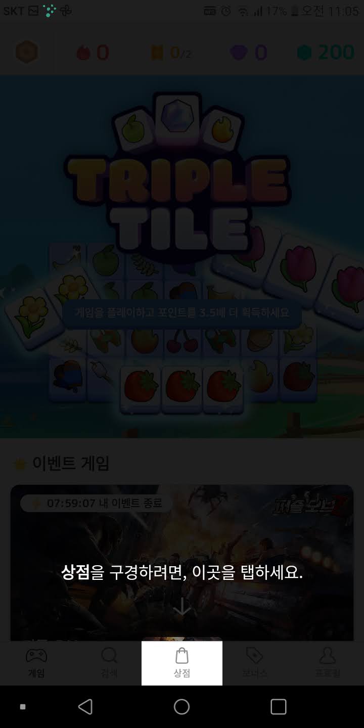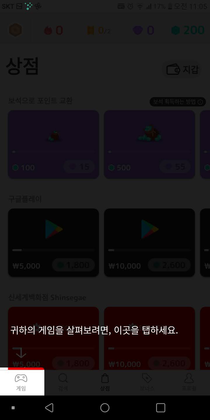 게임을 하시면 자동으로 초록색 보석이 모아져요! 이제부터는 게임을 할때 항상