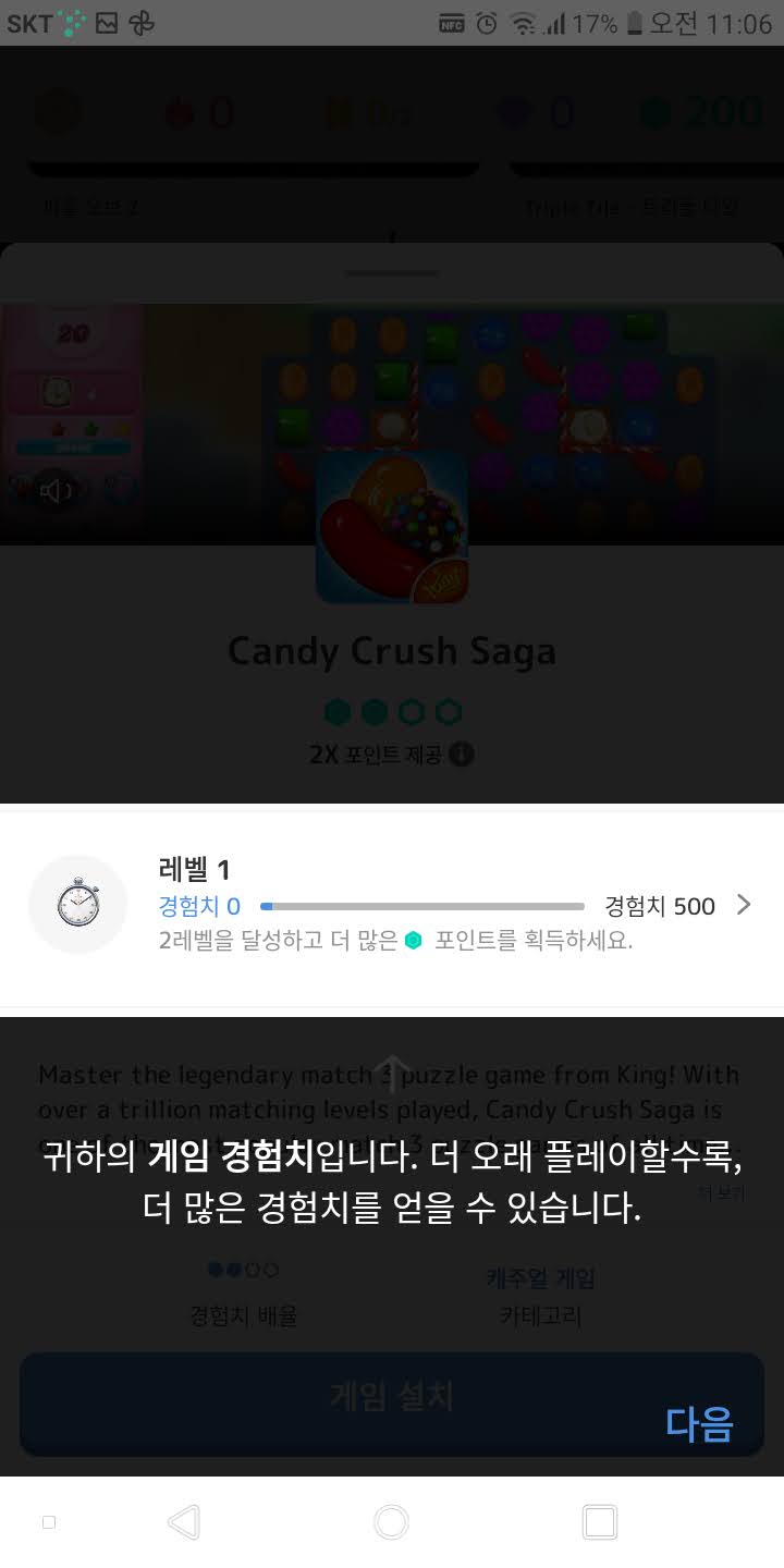 게임을 하시면 이렇게 아래 그림처럼 포인트가 쌓일때 마다 알려줘요