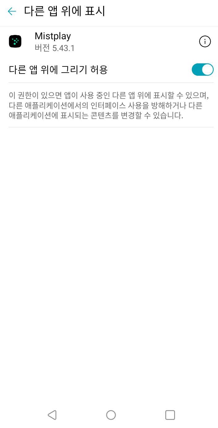 그리고 [다른앱위에 표시] 옆에 있는 좌측 화살표를 선택하시면