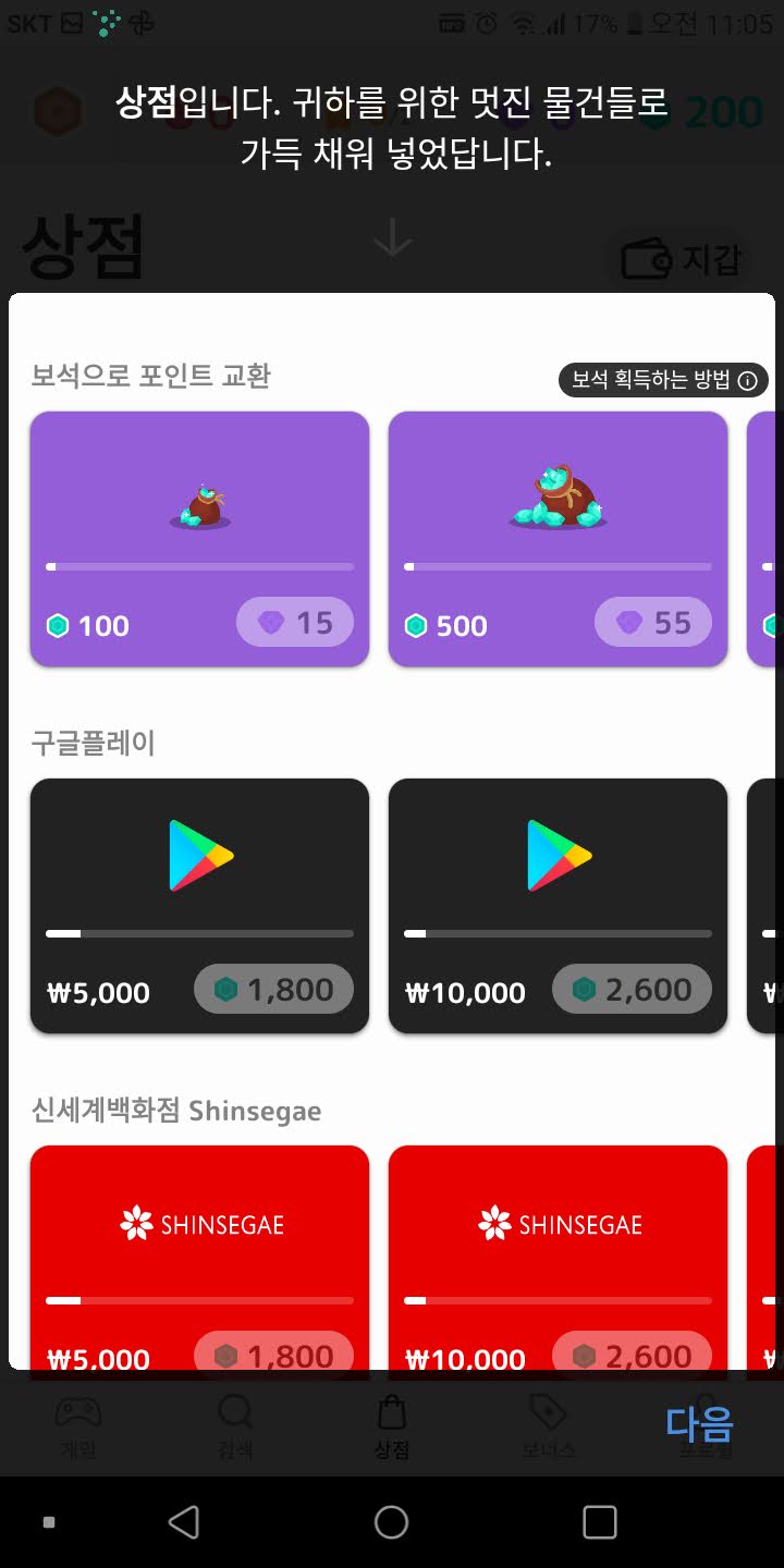 쭉 내려서 구경해보시면 신세계,gs25,cu,문화상품권 들이 보여요