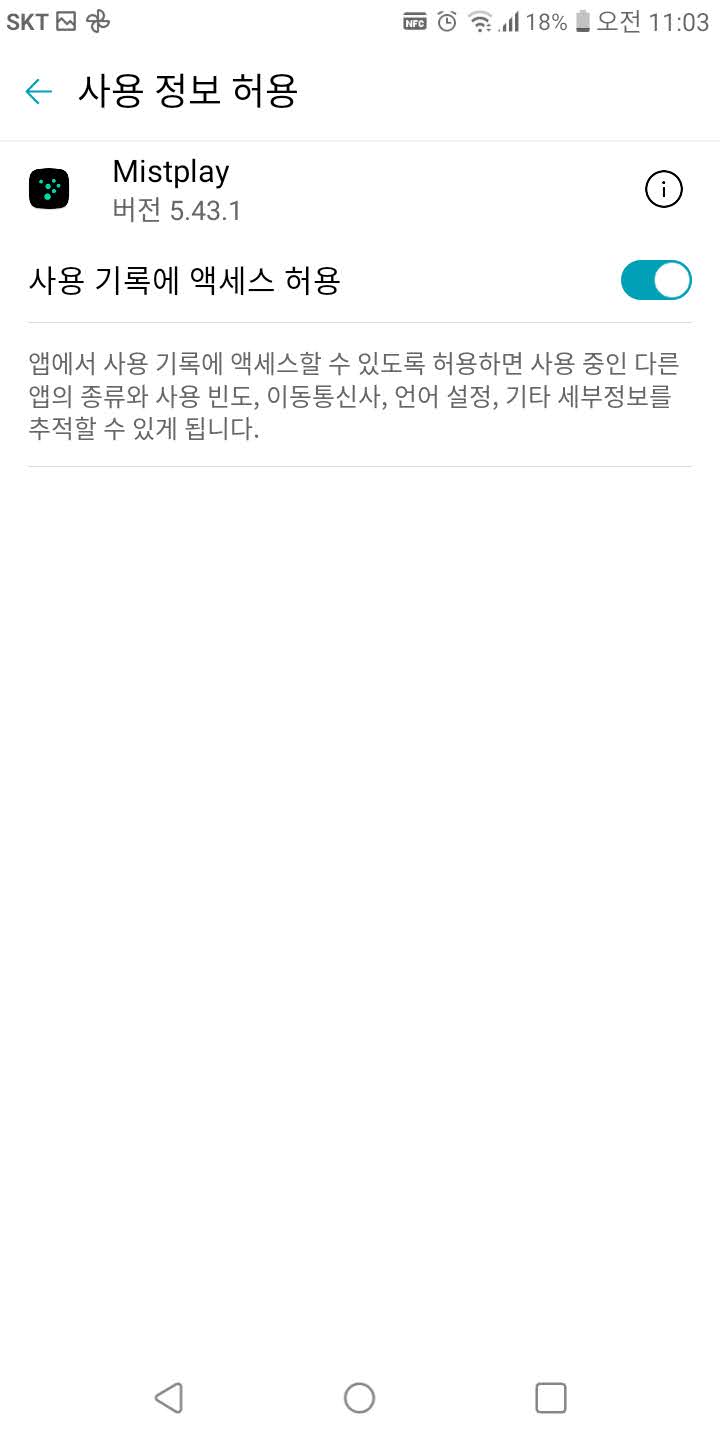 그리고 [사용정보허용] 을 설정하라고 나오면 똑같이 리스트에서 Mistyplay 를 찾아서 허용을 선택합니다!