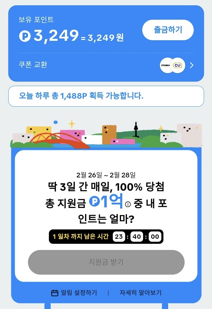 여러가지 이벤트들을 수행하면 포인트가 쌓이는데 너무 쉽다.