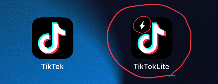 티톡 라이트는 아래 그림의 오른쪽 아이콘번개 표시가 있다.