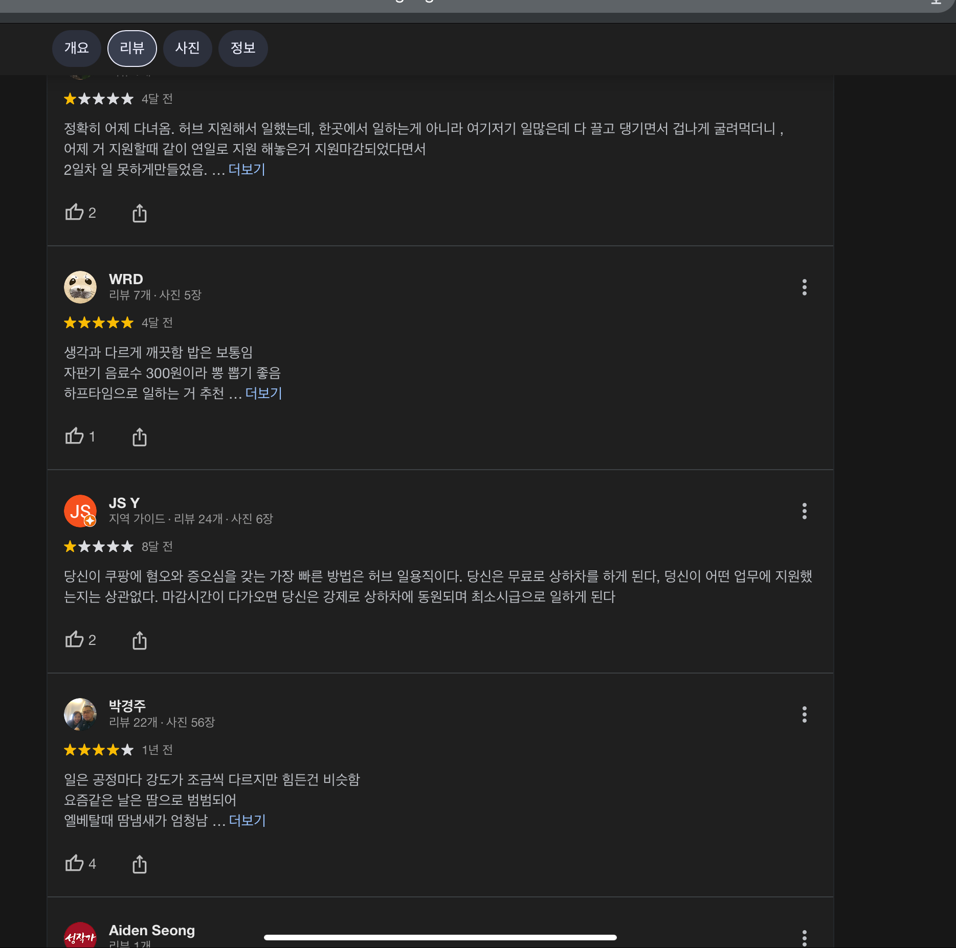 진짜 여긴 뉴스에 쿠팡 알바와서 죽은 사람 이해됨.